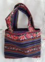 A small, lined tote bag with interior pocket. Measures 8-1/2" X 6-3/4" without the straps. Made and donated by Margaret Townsend