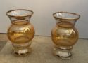 Pair of Vintage gold colored small, short bud vases. Estimated retail value $25. Donated by Stephens / Eagles Nest Antiques.