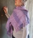 This v-shaped shawl is handwoven of natural fibers by Carol Lewis (mother of Chris). It may be hand washed cool, and dried naturally. Similar shawls by Carol have sold for $175. Click on the listing title to see more images