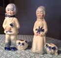 A pair of 5" Goebel figurine candle holders, a boy and a girl with flowers in blue and white. Donated by Sandra Norris