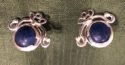 Sterling silver earring with a dark blue stone. Donated by Cele Mark
