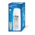SodaStream FIZZI creates fizzy drinks quickly in the comfort of your home. Snap-lock technology attaches easily and securely to bottle. Does not require electricity or batteries. Included: FIZZI sparkling water maker, SodaStream 60 L CO2 cylinder, reusable carbonating bottle. New in box. Value $70